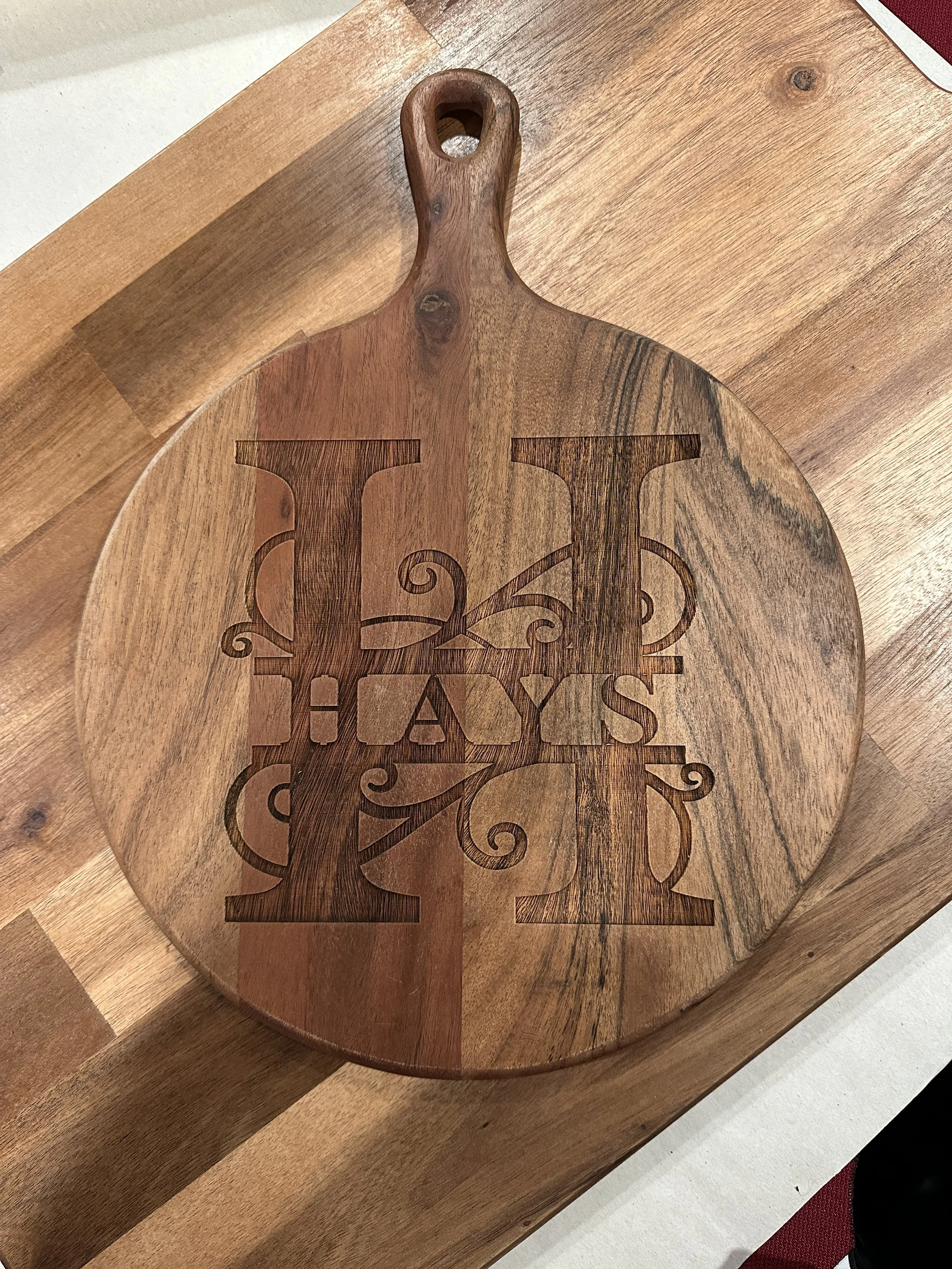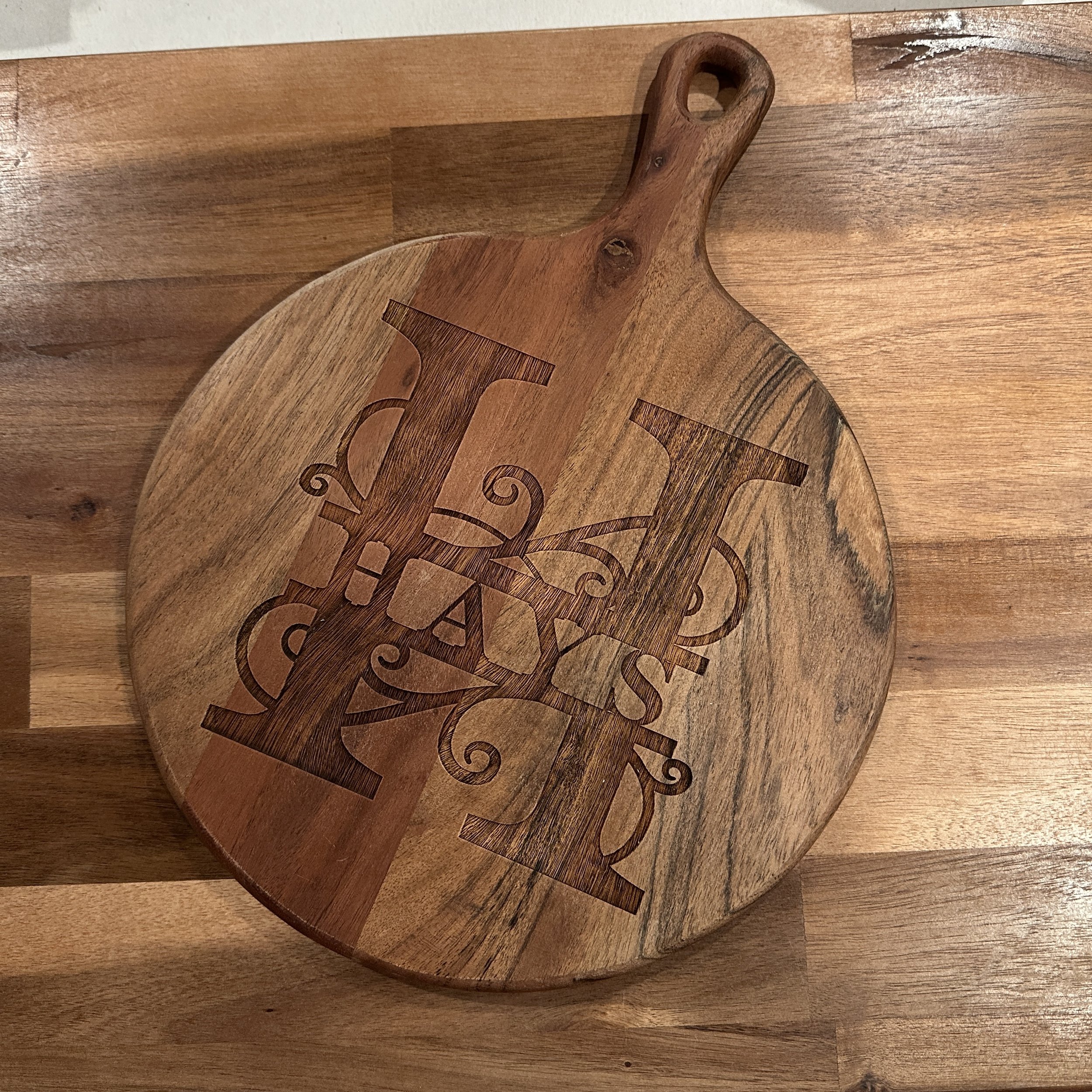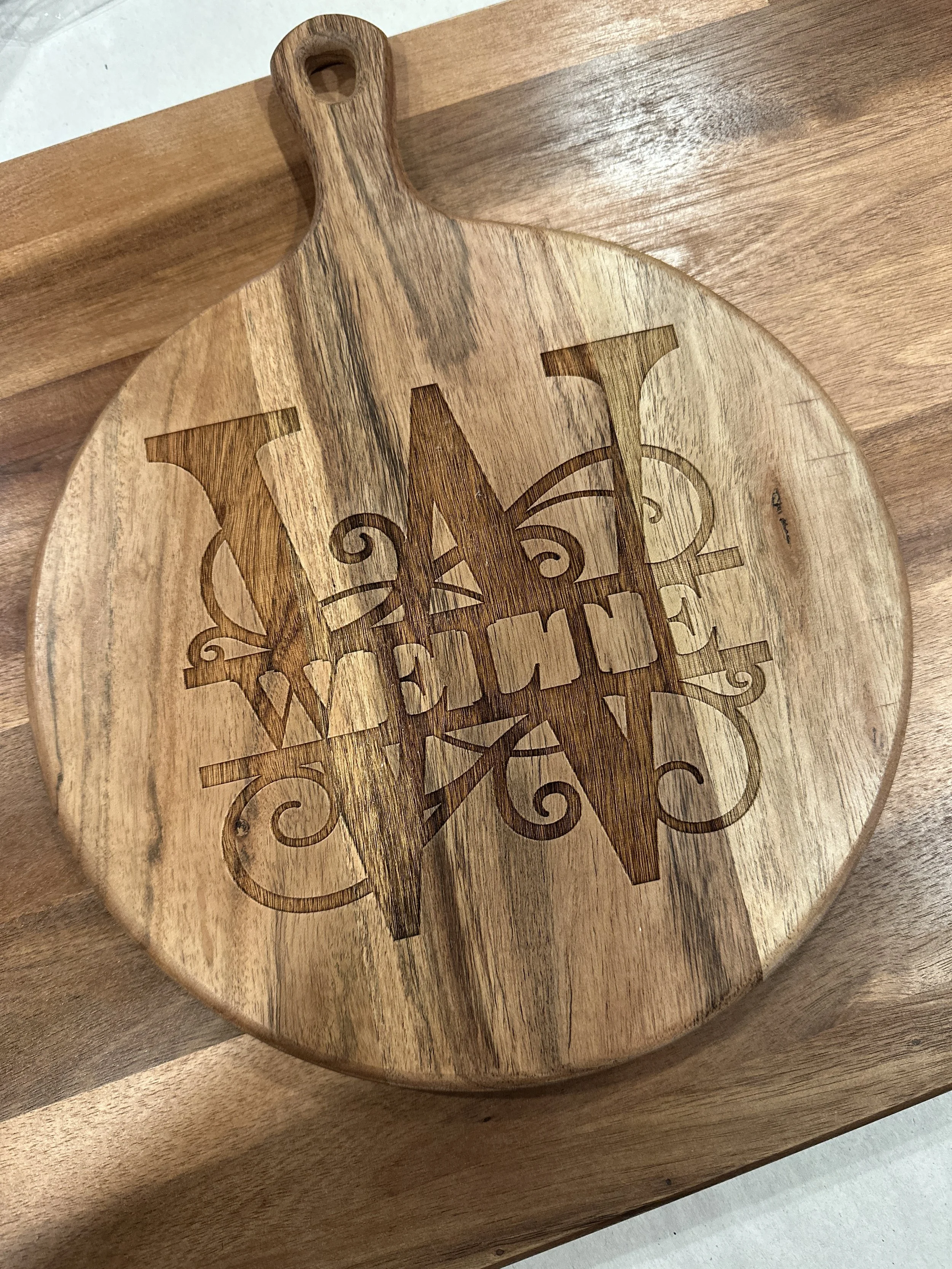 Charcuterie boards are a great anniversary or wedding gift. Hang it on the wall or serve cheese and crackers on it. Either way, this custom piece is sure to be a big hit!